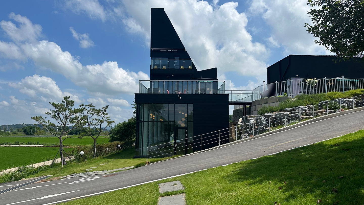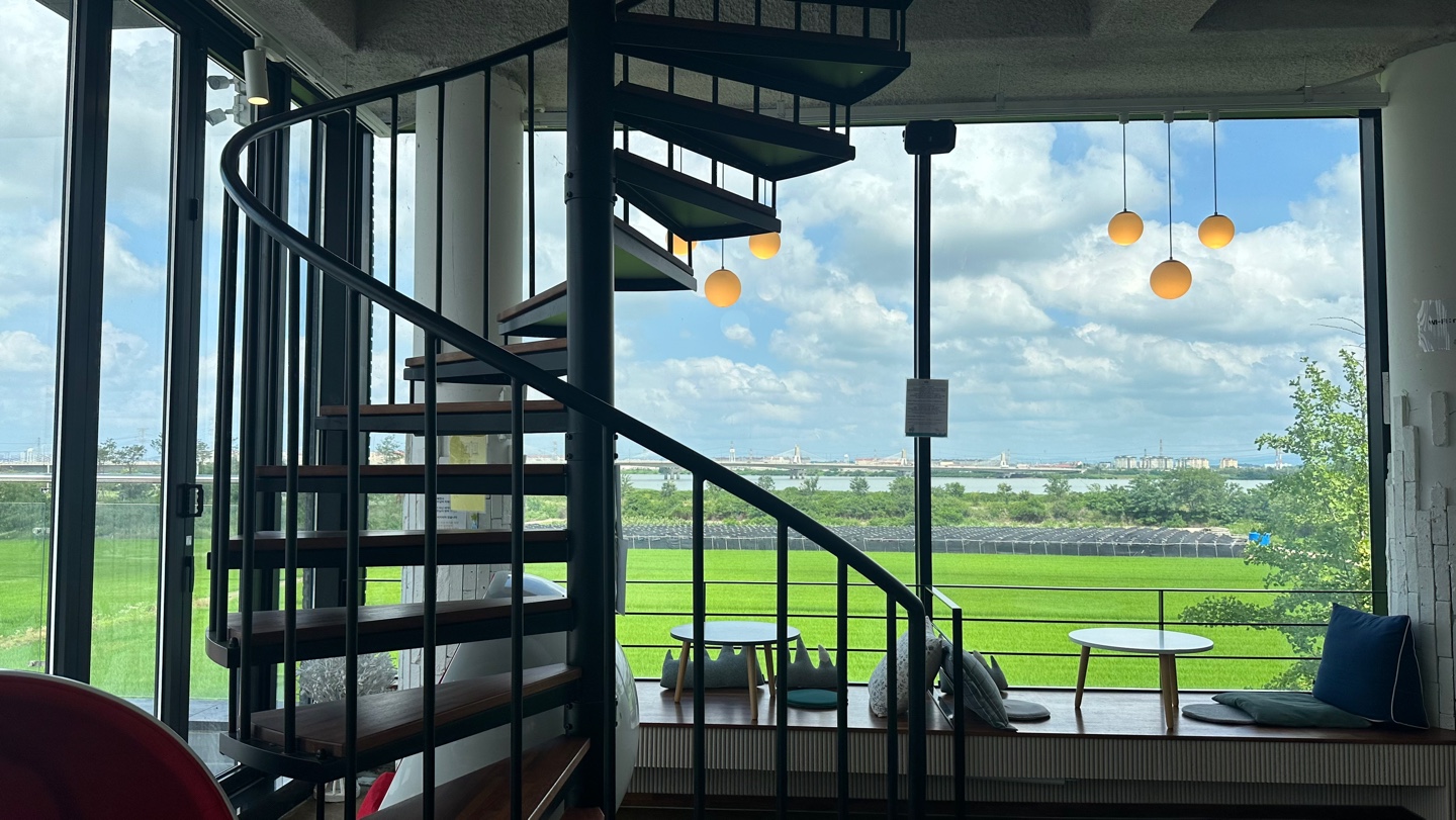 애견동 2층입니다. 나선형 계단으로 3층까지 올라가실 수도 있고, 통창을 통해 멋진 뷰를 볼 수도 있습니다.